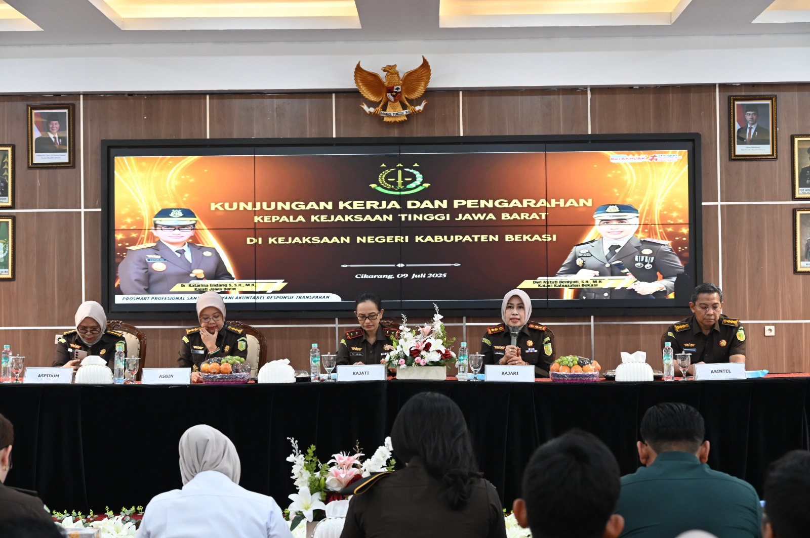 EDUKADI NEWS – Kajati Jabar Katarina Endang Sarwestri, S.H.,M.H melakukan rangkaian kunjungan kerja ke Kejaksaan Negeri Kota Bekasi dilanjutkan ke Kejaksaan Negeri Kabupaten Bekasi (09/07/25).