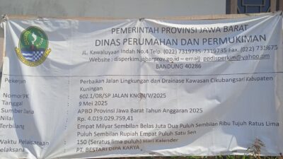 Pemerintah Provinsi Jawa Barat melalui Dinas Perumahan dan Permukiman (PERKIM) merealisasikan proyek pekerjaan perbaikan jalan lingkungan dan drainase di kawasan Cikubangsari, Kabupaten Kuningan, dengan pagu anggaran fantastis Rp4.019.029.759,41, bersumber dari APBD Tahun Anggaran 2025.