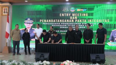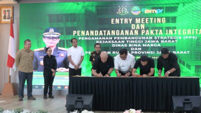 EDUKADI NEWS – Bertempat di Aula R.Soeprapto Lantai 8 Kejati Jabar, Kajati Jabar Katarina Endang Sarwestri, S.H., M.H.didampingi oleh Asisten Intelijen Dr. Agustinus Herimulyanto, S.H., M.H.Li. beserta jajaran melaksanakan kegiatan Entry Meeting dan Penandatanganan Pakta Integritas dalam pelaksanaan pengamanan pembangunan strategis Kejati Jabar pada Dinas Bina Marga dan Penataan Ruang Provinsi Jawa Barat TA. 2025.