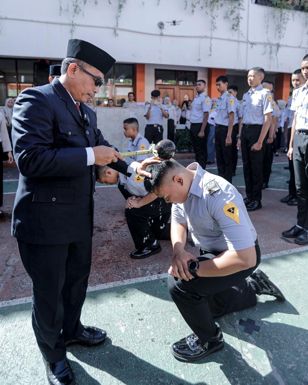 EDUKADI NEWS – BANDUNG, DISDIK JABAR — Sebanyak 383 siswa kelas X SMAN 14 Bandung dilantik sebagai taruna, Senin (10/11/2025). Kepala Dinas Pendidikan (Kadisdik) Jawa Barat, Purwanto melantik secara simbolis dengan menyiramkan air kembang kepada sembilan taruna dengan nilai terbaik.