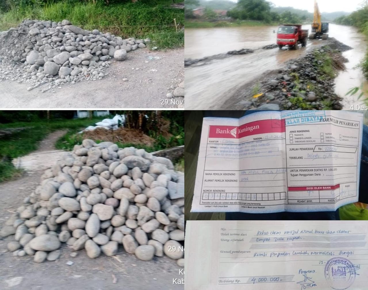 Diduga Hasil Penjualan Batu Kali Limbah Normalisasi Sungai Untuk Bantuan Pembangunan Masjid Jadi Bancakan Oknum Pemdes Datar, Cidahu, Kuningan Jawa Barat