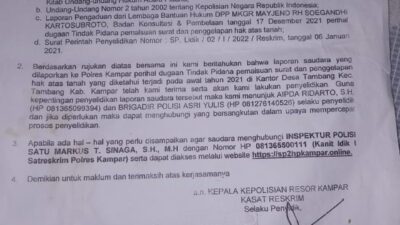 Berdasarkan hasil komunikasi WhatsApp pada 18 Desember 2025, Dandim 0303/Kampar Ir. Darma Nova Siregar, yang juga menjabat sebagai Sekretaris LBH MKGR Mayjen (Purn) R.H. Sugandhi Kartosubroto, menyatakan bahwa dirinya bertindak sebagai pelaksana sesuai Instruksi Presiden RI.