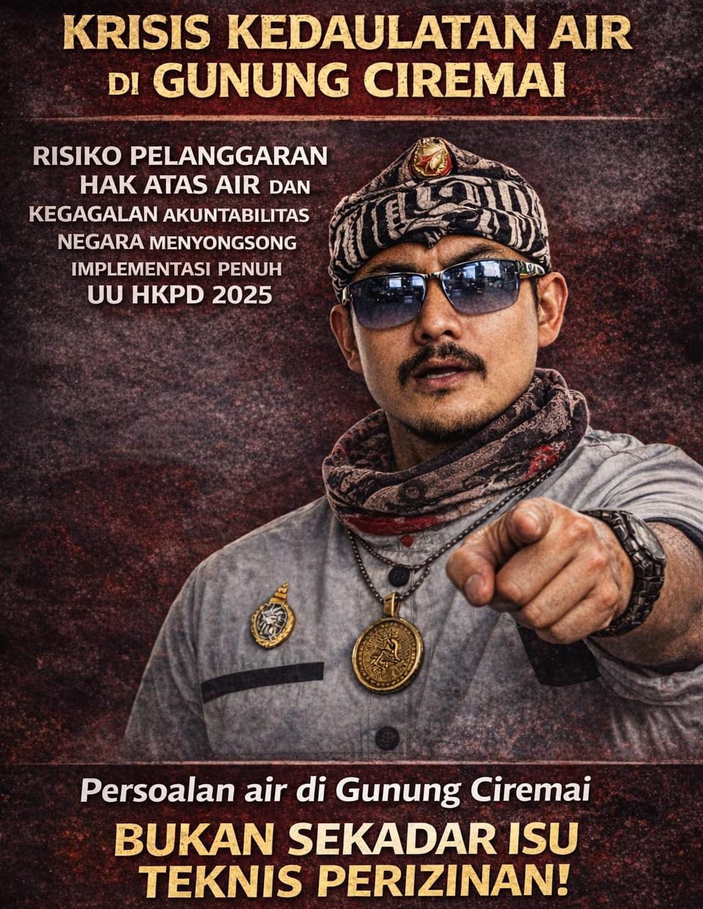 Risiko krisis hak atas air di tengah transisi UU HKPD 2025 : Gunung Ciremai di persimpangan, ketika air jadi risiko kebijakan. Krisis kedaulatan air di gunung Ciremai. Risiko struktural terhadap pemenuhan hal atas air dan tantangan akuntabilitas kebijakan publik menyongsong Implementasi penuh UU HKPD 2025. Transisi fiskal, tekanan ekologis adalah ujian hak atas air di kawasan gunung Ciremai. Air, hak dasar, dan kewajiban Negara membaca risiko kebijakan di gunung Ciremai
