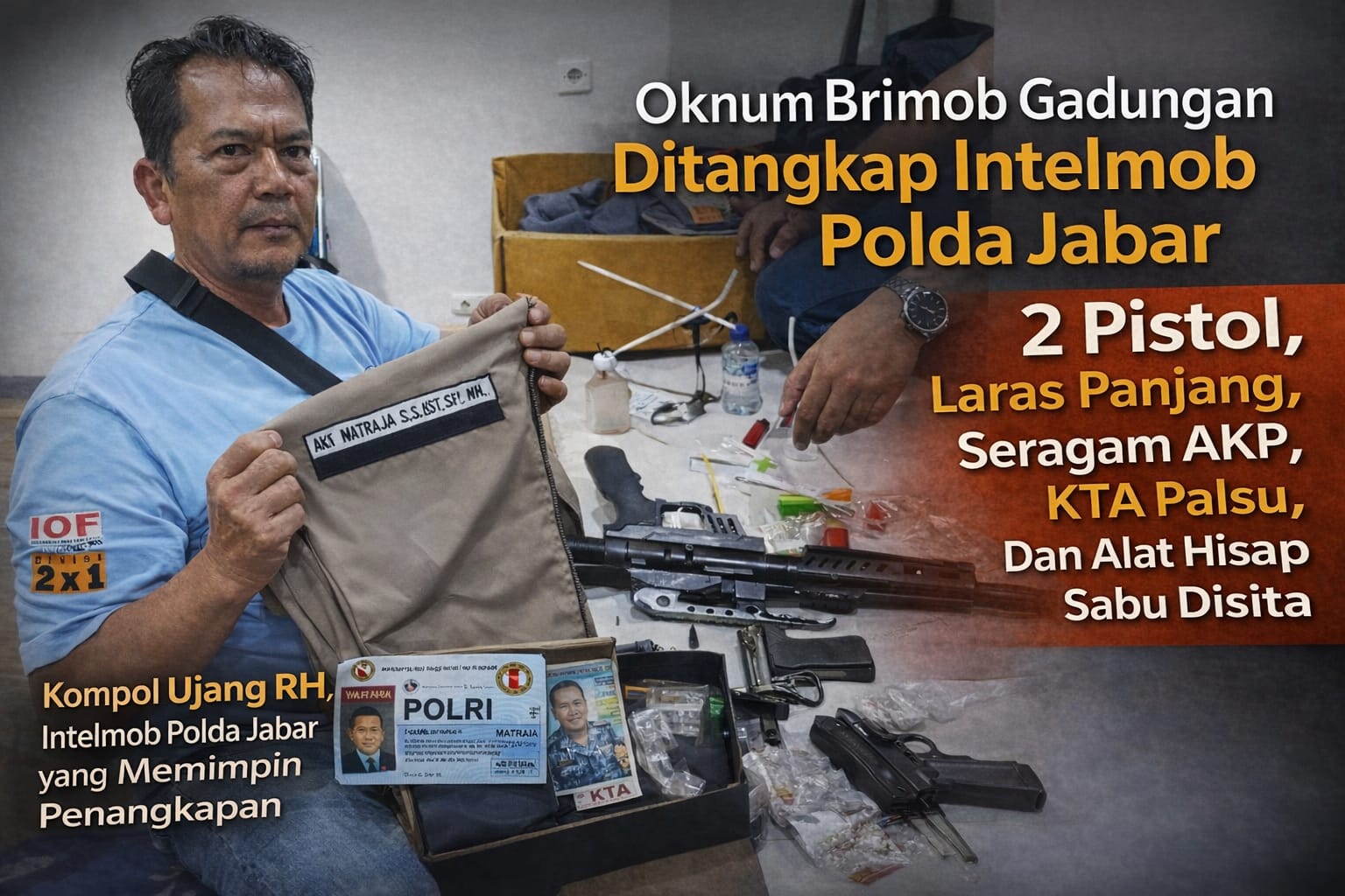 “Dua peristiwa hukum berlangsung beriringan, pertama kasus intimidasi dan penyamaran polisi brimob gadungan di Desa Bantarpanjang, dengan sejumlah alat bukti yang sudah ditemukan, kemudian diikuti kasus kedua tentang informasi dugaan penipuan dalam pengurusan calon tenaga kerja,”ungkapnya.